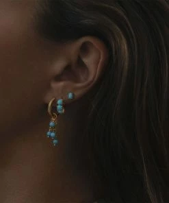 Ørestik i guldbelagt sterling sølv sat med cabochonslebet turkis. Den sælges enkeltvis. Ørestikken tilhører Pasha kollektionen med dronning Kleopatra som muse.