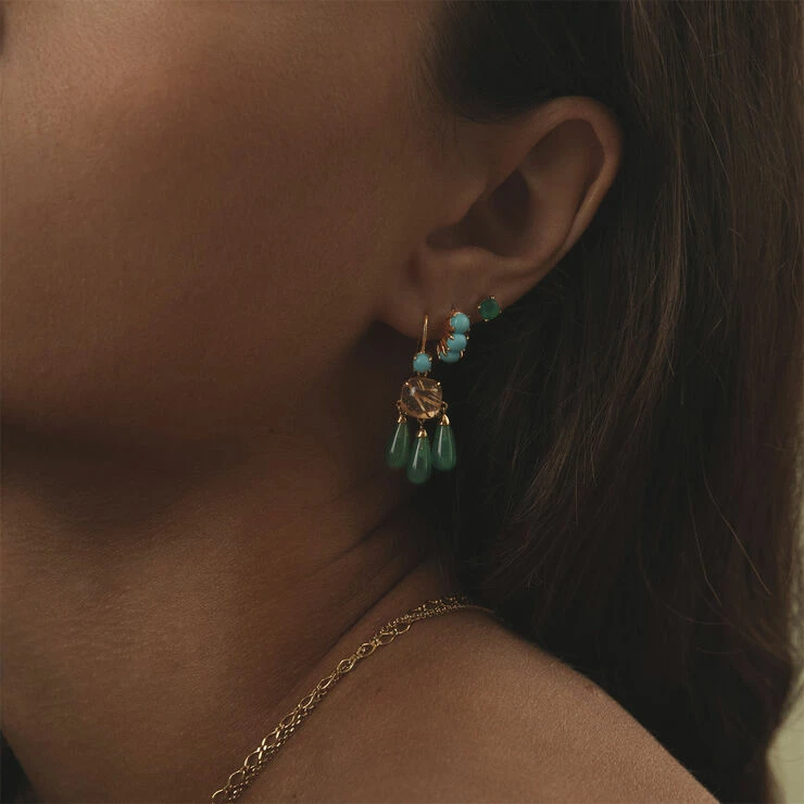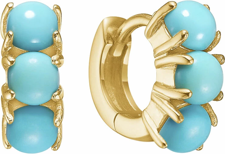 Hoops i guldbelagt sterling sølv med cabochonslebet turkis. Hoopsene tilhører Pasha kollektionen med dronning Kleopatra som muse.