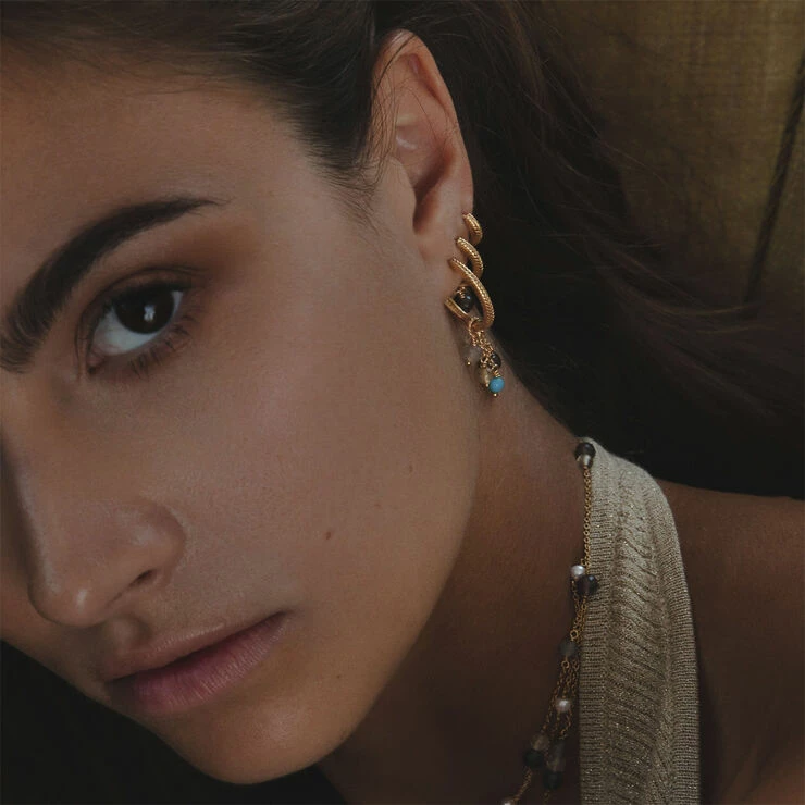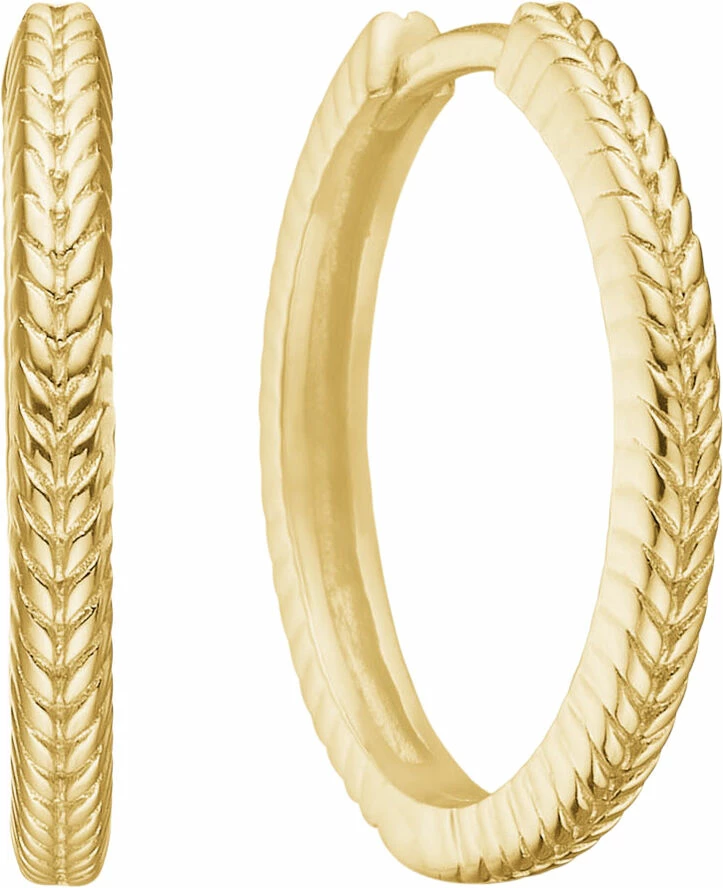 Hoops i guldbelagt sterling sølv med smukke sildebens-detaljer. De måler 2cm. Hoopsene tilhører Fishbone kollektionen, der er dekoreret med flettede signaturdetaljer.