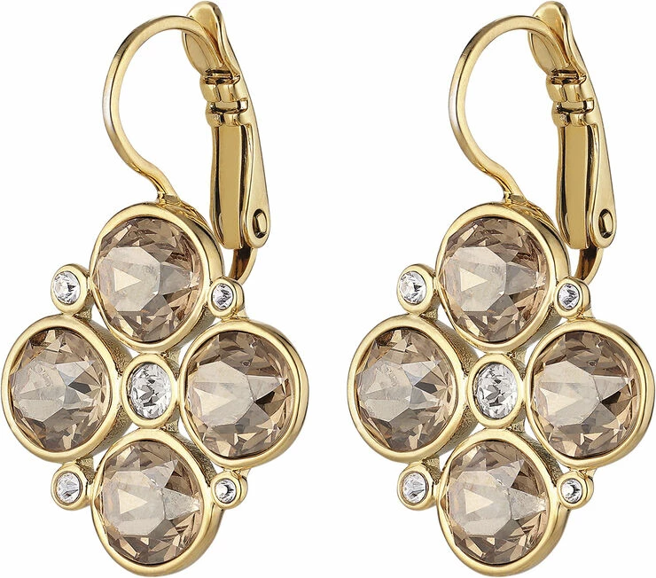 MIA tager sit designudgangspunkt i en stiliseret blomst, der med gotiske undertoner udstråler klassisk elegance og feminin modernitet. Passer fantastisk til vores halskæde MAUDE vist andetsteds her på sitet. Krogen er i kirurgisk stål, mens smykket er støbt i messing, isat funklende swarovski krystaller i de smukkeste toner. Belægningen er en kvalitetsbelægning der bare holder og holder. Her vist i et miks af gyldne og klare sten på poleret guld. Nikkelfri, allergistestet og dansk DYRBERG KERN design. Smukkere bliver det vist ikke.