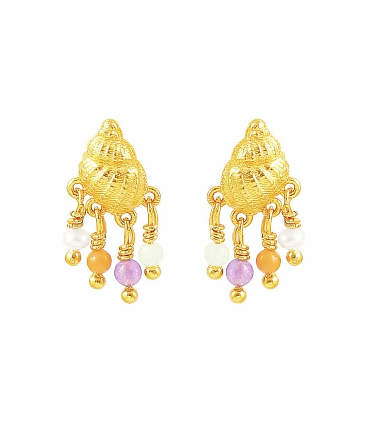 Sterling sølv forgyldt med 18 karat guld, ferskvandsperler og glasperler. Længde: 1.5 cm. Bredde: 0.7 cm.