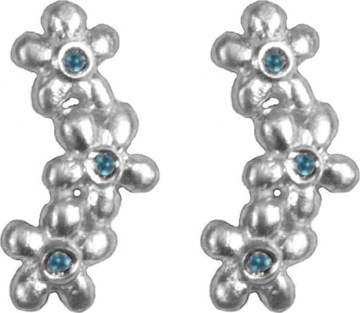 Ear stud. Sterling silver with blue cubic zirconia. Length: 1.4 cm