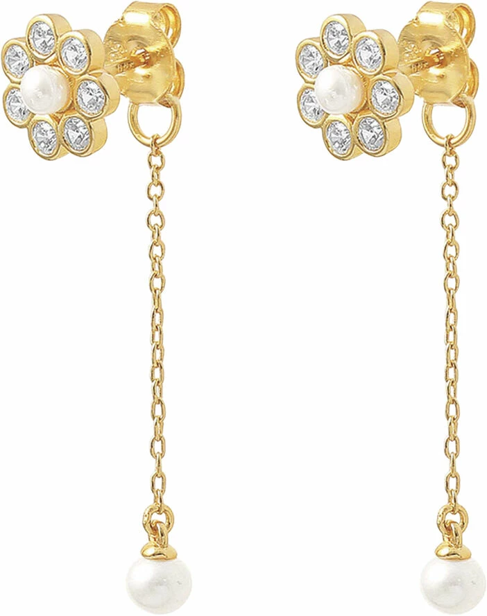 Sterling sølv forgyldt med 18 karat guld, cubic zirconia og ferskvandsperler. Længde: 3.5 cm