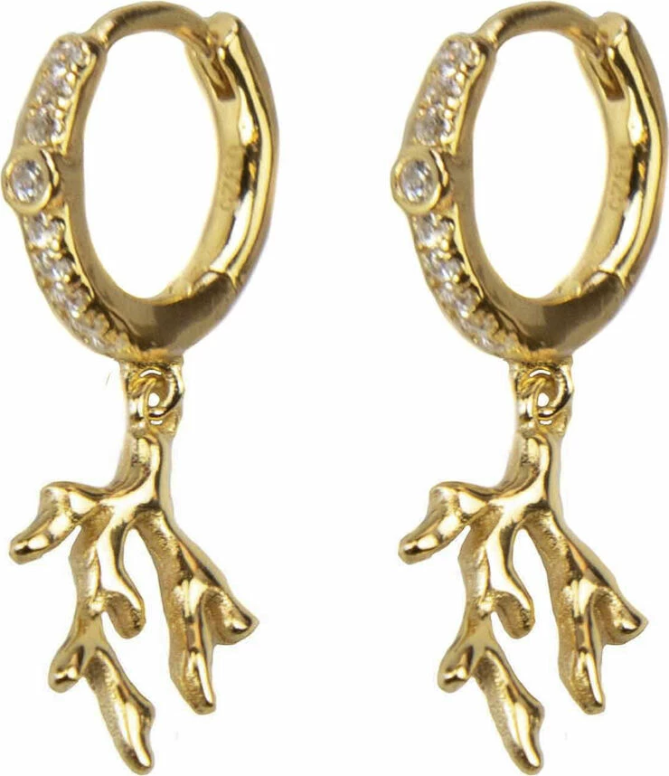 Hoop earring. 18K gold plated sterling silver with white cubic zirconia. Length: 2.3 cm