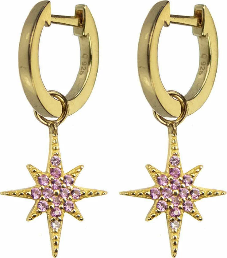 Hoop earring. 18K sterling silver with pink cubic zirconia. Length: 2.4 cm