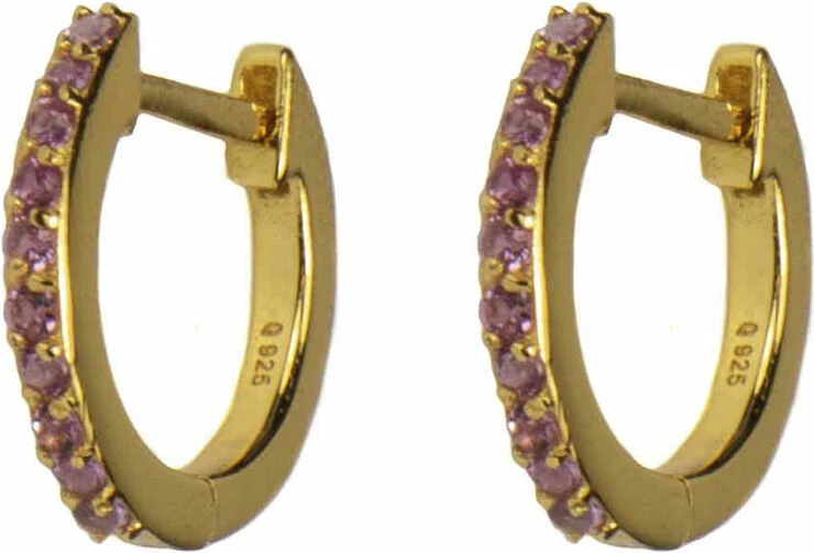 Hoop earring. 18K gold plated sterling silver with pink cubic zirconia. Diameter: 1 cm
