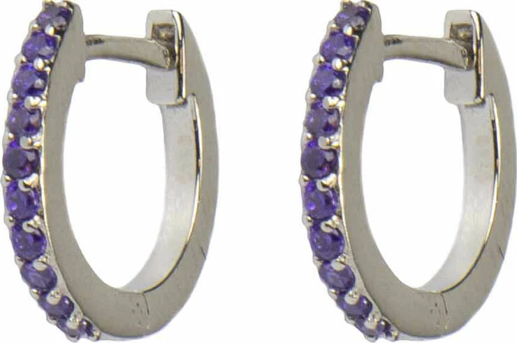 Hoop earring. Sterling silver with violet cubic zirconia. Diameter: 1 cm