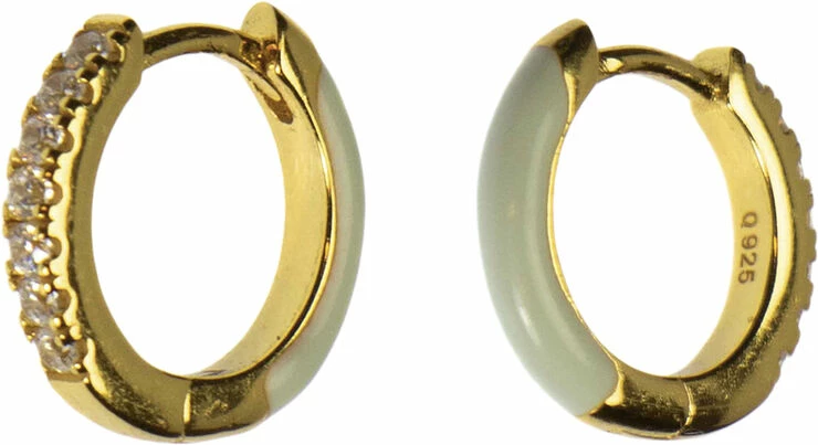 Esta emalje¿reringe er sm hoops med myntefarvet emalje p den ene side og hvid cubic zirconia p den anden side.