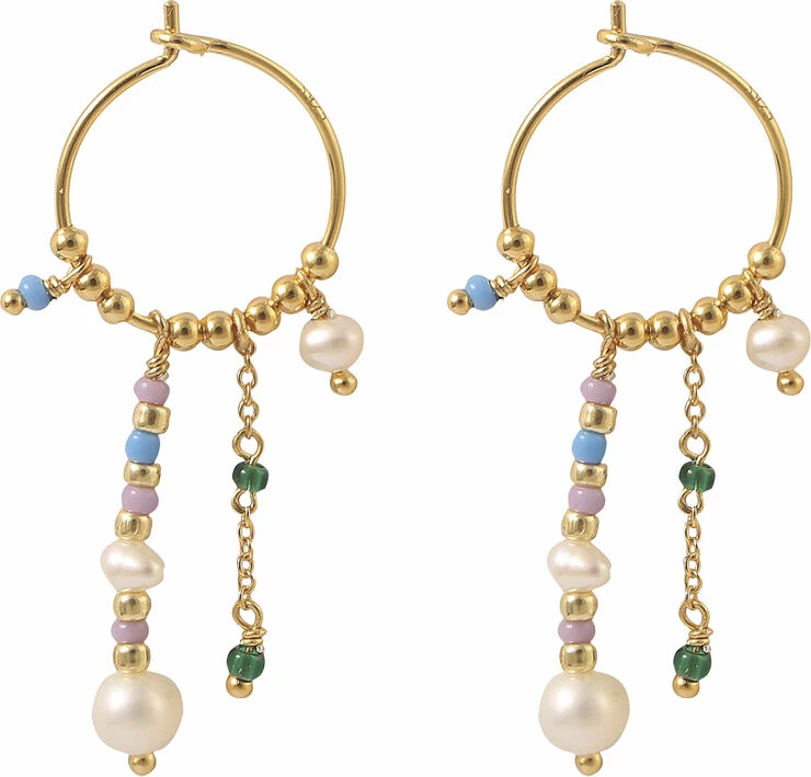 Sterling sølv forgyldt med 18 karat guld og ferskvandsperler. Længde: 4 cm