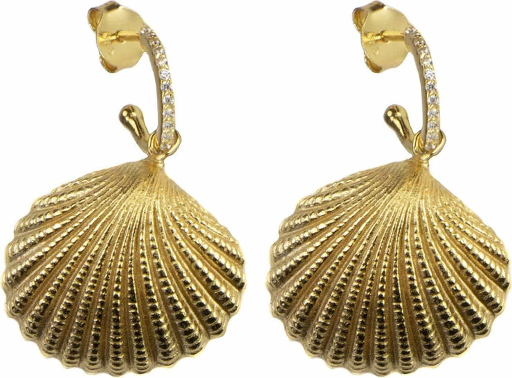 Ear stud. 18K gold plated sterling silver with white cubic zirconia. Length: 2.5 cm width: 1.5 cm