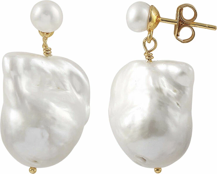 Sterling sølv forgyldt med 18 karat guld, ferskvandsperler og baroque ferskvandsperler. Længde: 3 cm