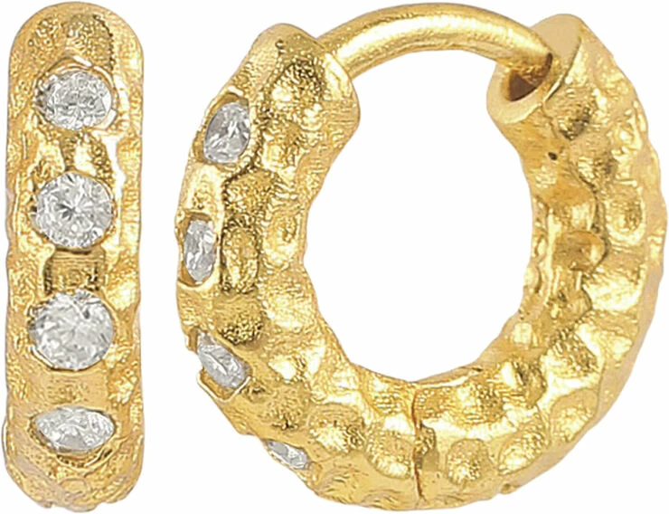 Forgyldt sterlingsølv. Mål: Diameter 1,2 cm. Materialer: hvid CZ