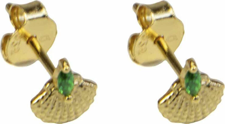 Ear stud. 18K gold plated sterling silver with a green cubic zirconia. Length: 4 mm
