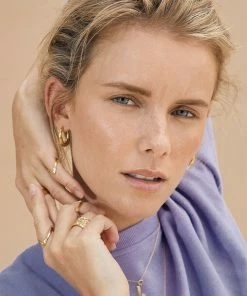 Rhombus ørering i blank 18K forgyldt sterlingsølv med graveringer, der giver et spændende og anderledes look. Øreringens indvendige diameter måler ca. 21 mm, og selve øreringen har en bredde på ca. 2,5 4,5 mm. Det rombeformet design giver denne klassiske ørering et nyt og moderne tvist, samtidig med at prægningen reflekterer metallets overflade virkelig flot. Brug øreringen alene eller sammen med en cuff for at fuldende dit look.