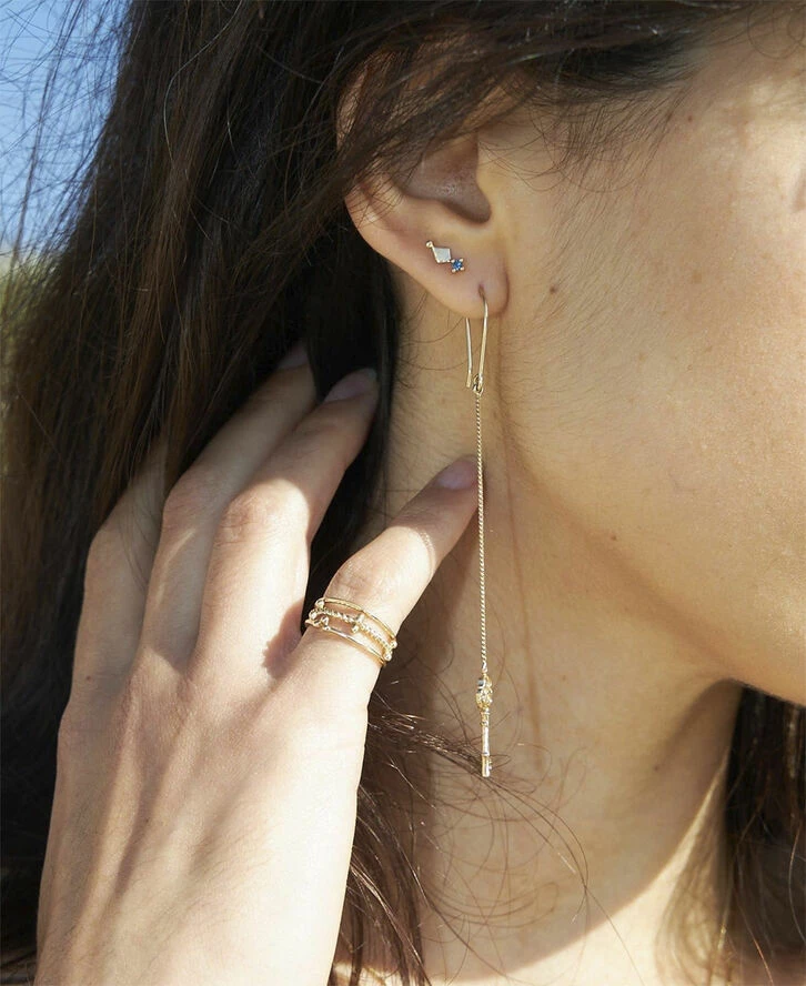 Øreringen sælges enkeltvis. Stud ørestikker i 14 karat massivt guld. Blå safir med total ct.: 0.03 ct. Størrelse: 0.9 cm.