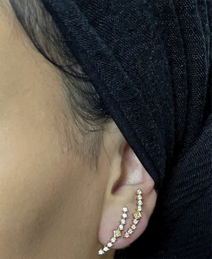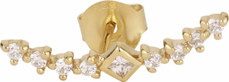 Øreringen sælges enkeltvis. Ørestik i 925 sterling sølv, belagt med 14 karat guld og højpoleret. Fattet med cubic zirconia. Størrelse: 2 cm