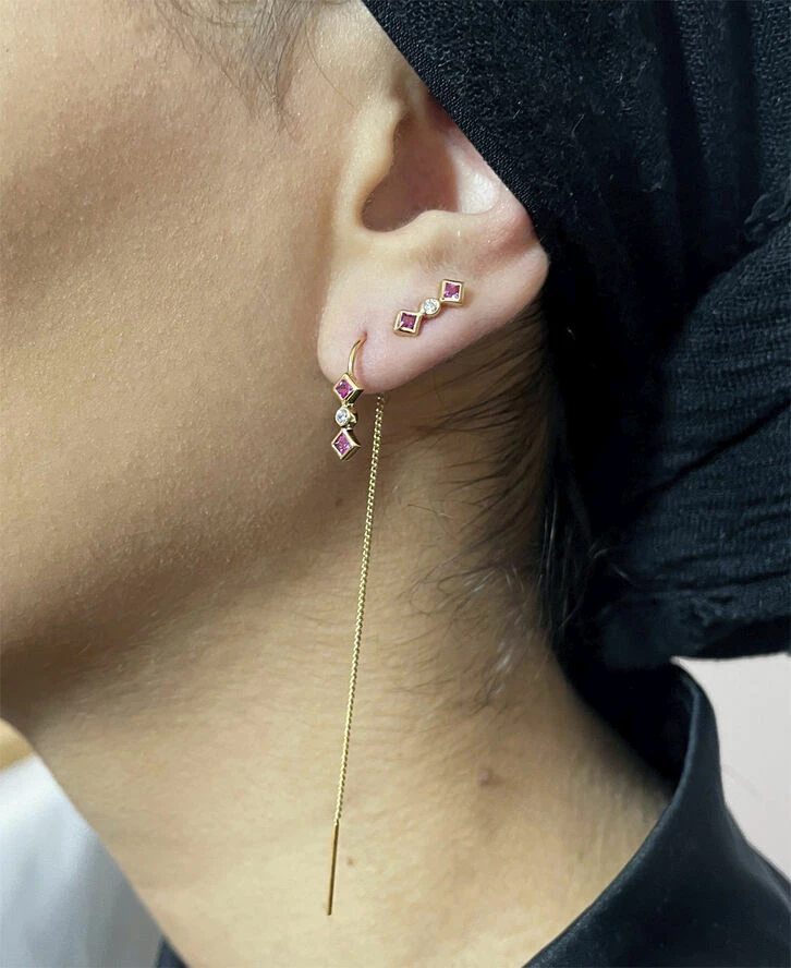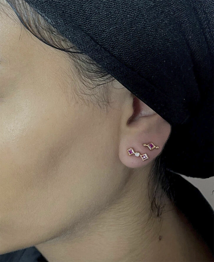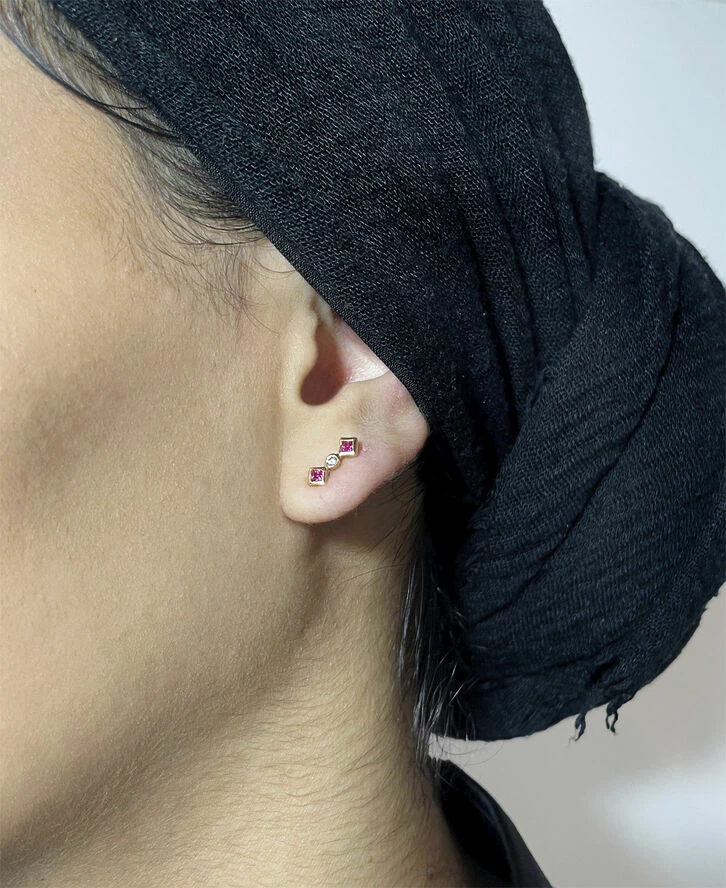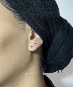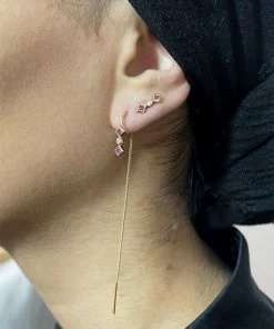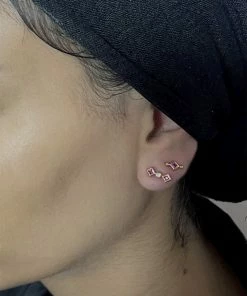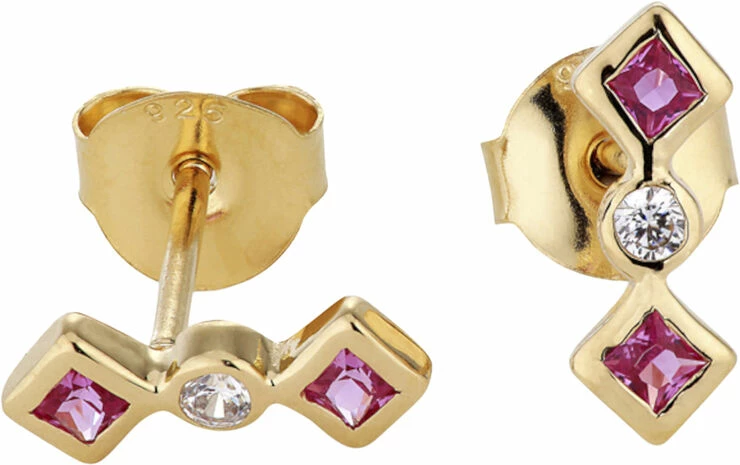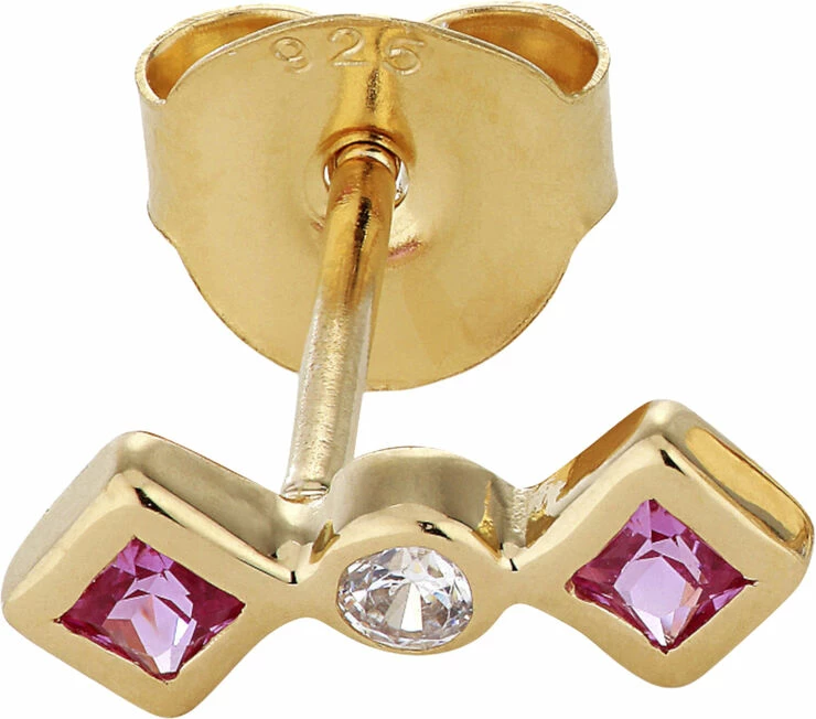Øreringen sælges enkeltvis. Ørering i 925 Sterling sølv, forgyldt med 14- karat guld. Fattet med en hvid og to lyserøde kubisk zirconia. Størrelse: 1 cm.