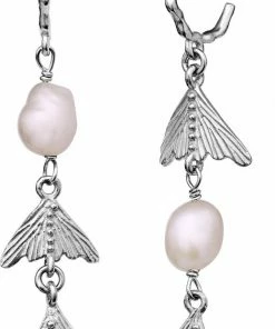 Let som nærtsværmerens vinger og blid som en lys sommernat. Det er essensen af de smukke Luna øreringe, der graciøst hænger fra øret med ferskenfarvede perler og forgyldte lette natsværmere. <br><br>Maanestens SS22 kollektion er inspireret af alle de organiske former, der findes omkring os, og de kreative energier, de giver beskueren. Kollektionen, Surrounding Shapes, hylder håndværket og er som alle Maanestens smykker håndlavet på eget værkssted i Jaipur, Indien.<br><br>Materialer: genanvendt sterling sølv (925), ferskenfarvede ferskvandsperler<br><br>Længde: 42 mm