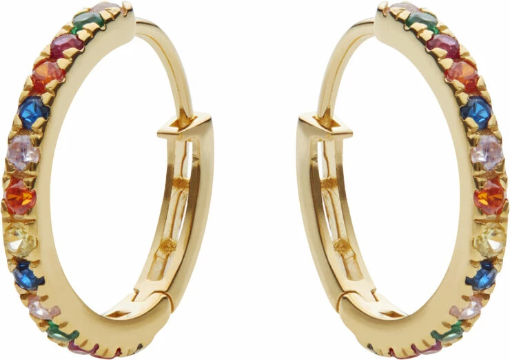 Skyd en guldpil efter det grå efterår med disse smukke hoop øreringe med de fineste farvede ædelsten indfattet hele vejen rundt. Elegante til hverdag, forrygende til fest.