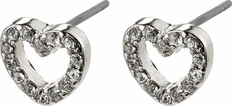 Sølvbelagte ørestikker med konturen af et fint hjerte. Hjertet har blanke sider og er på fronten dækket af funklende krystaller. Symbolet for kærlighed er her gengivet i et smukt design, der fanger lyset. En skøn og feminin klassiker med et strejf af glamour. Et diskret, poetisk blikfang, der vidner om en romantisk og yndefuld personlighed.