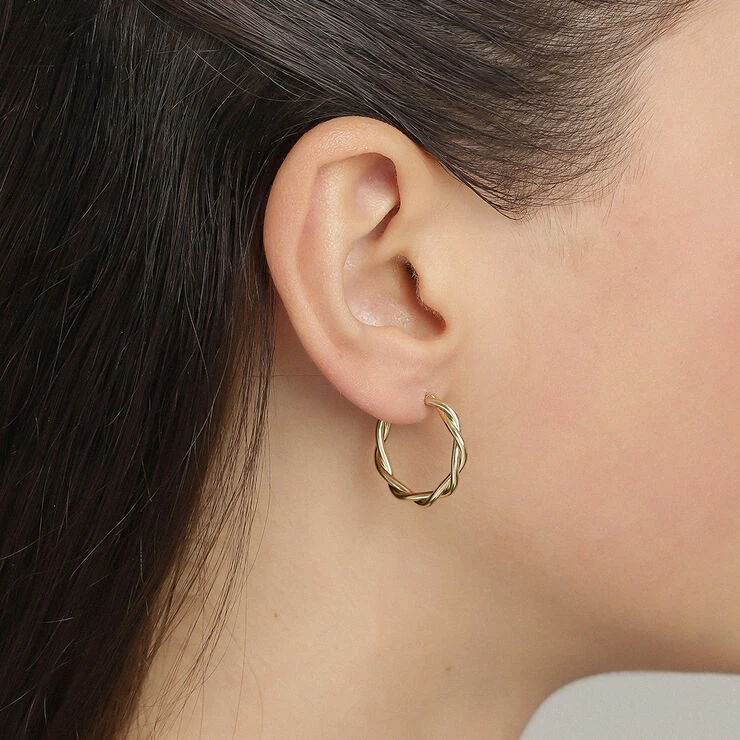 Lækre creoler med en snoet ring. En smuk variation over de klassiske creoler. Snoningerne giver en smuk refleksion af lyset i de guldbelagte ringe. Vores snoede hoops fås i tre størrelser, så du kan finde dem, der passer til dig og dit unikke look. Et par øreringe, der hurtigt vil blive en favorit. Brug dem alene eller i kombination med andre af Pilgrims skønne øreringe.