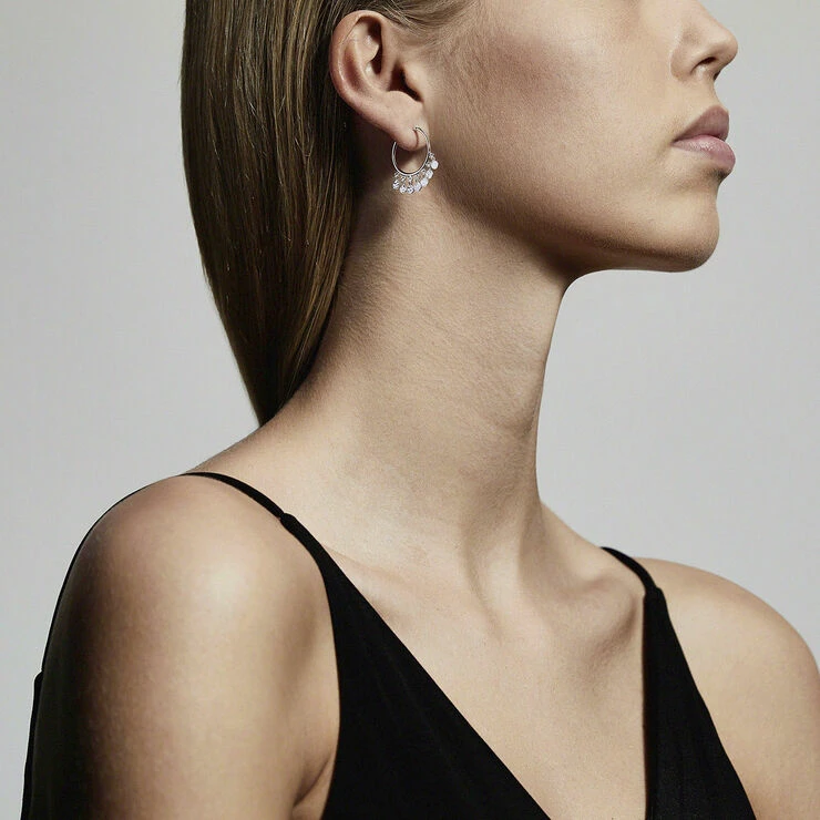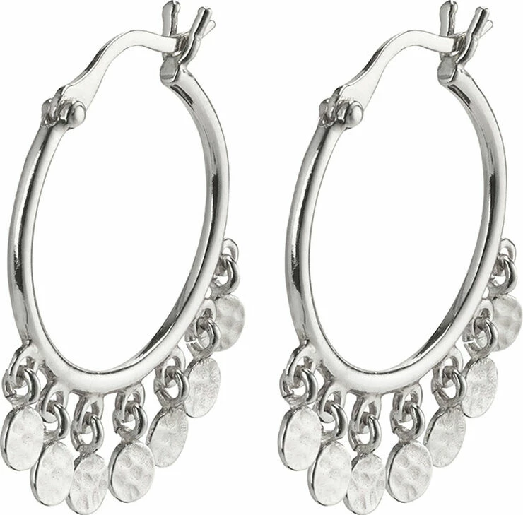 Charmerende sølvbelagte creoler med et eksotisk design med små blanke mønter. Disse lækre øreringe har en perfekt størrelse til et hverdagslook, men vil også give kant til dit outfit, når du indtager nattelivet. Brug dem til at fuldende dit luksusbohemelook eller til jeans og en T-shirt.