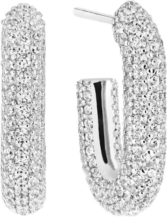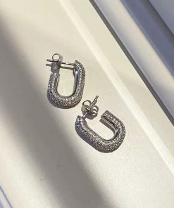 Capri er en smykkekollektion fra Sif Jakob Jewellery, der er kendt for sine rene geometriske former i et hav af sparklende zirconia. Denne moderne og industrielle kollektion giver uendelige muligheder for at være kreativ med sit eget smykke look. Uanset om det er til styling af det afslappede hverdagslook eller til glamour på en dinner night – er den dristigt og kantet, udstråler eksklusivitet og glamour. Capri er en iøjnefaldende smykkeserie, der kan bæres individuelt eller sammen. Capri smykkerne afspejler kvindens power og coolnest, som beviser, at form og funktion kan være den samme. Øreringe i rhodineret sterlingsølv 925 med blankpoleret overflade og facetslebne hvide zirkoner.<br>Øreringenes mål: Længde 19,5 mm, Højde 13,5 mm, Bredde 4 mm