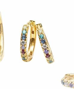 Ellera-kollektionen fra Sif Jakobs Jewellery er sparklende og enkel og står for elegance og glam til overkommelige priser. Øreringe i sterlingsølv 925 forgyldt med 18 karat guld med blankpoleret overflade og facetslebne multifarvede zirkoner.<br>Øreringenes mål: Højde 14 mm, Bredde 2 mm