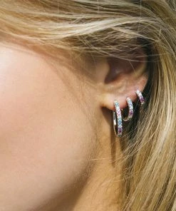 Ellera-kollektionen fra Sif Jakobs Jewellery er sparklende og enkel og står for elegance og glam til overkommelige priser. Øreringe i rhodineret sterlingsølv 925 med blankpoleret overflade og facetslebne multifarvede zirkoner.<br>Øreringenes mål: Højde 2 cm, Bredde 2 mm