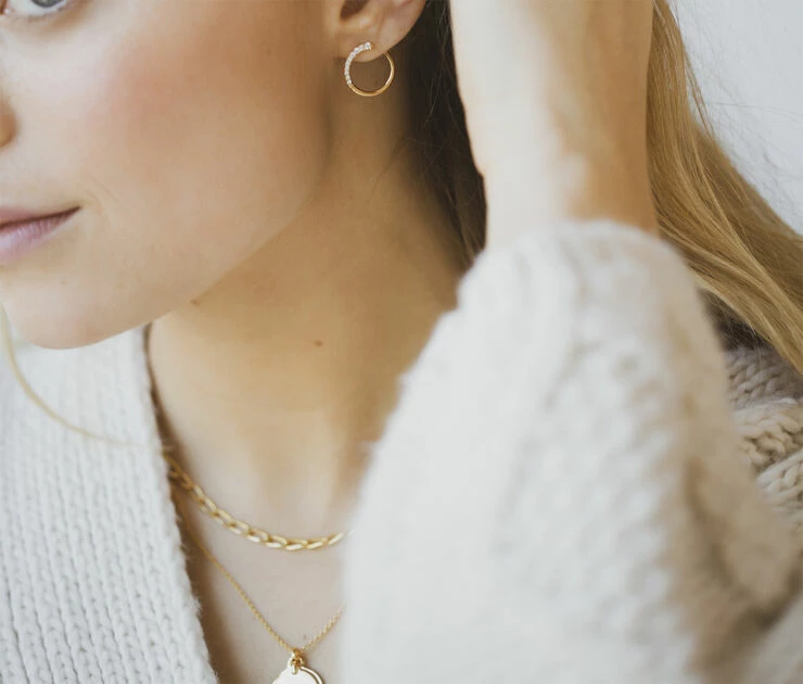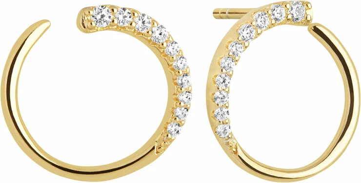 Øreringe i sterlingsølv 925 forgyldt med 18 karat guld med blankpoleret overflade og facetslebne hvide zirkoner.