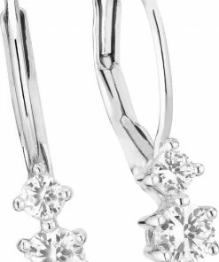 Sif Jakobs Jewellery Rimini-kollektionen præsenterer smukt sarte, klassiske pieces med farver og spændende sparklende cubic zirconia-former. Rimini er den perfekte balance mellem nye klassikere og lige på trend pieces. French hook øreringe i rhodineret sterlingsølv 925, poleret overflade, håndsat med facetslebne 2,3 mm og 3,3 mm hvid zirkoner.<br>Øreringenes mål: Længde 19 mm, Bredde 0,9 mm, Tykkelse 0,9 mm
