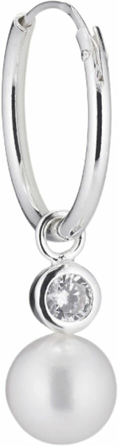 15mm hoop ørering med hvid ferskvandsperle og klar sten. Sælges enkeltvis.
