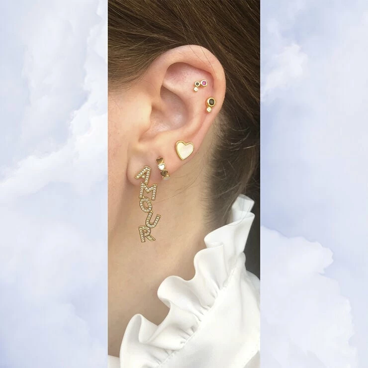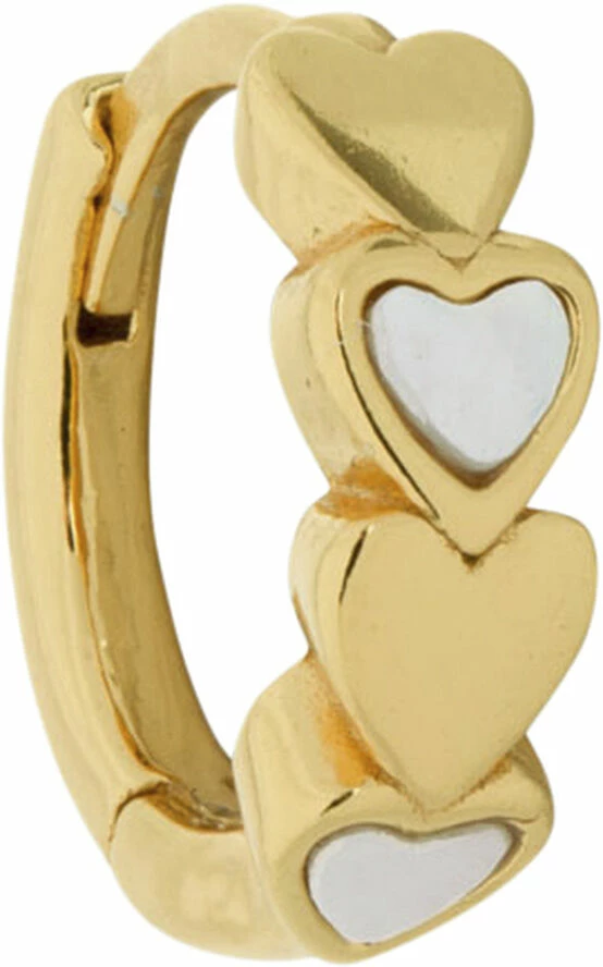 Lille huggie ørering med fine perlemors hjerter. Sælges enkeltvis.