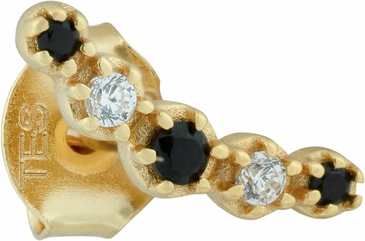 Buet ørestik med klare og sorte sten. Sælges enkeltvis. Til højre øre.