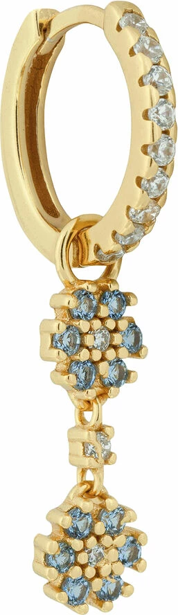 Huggie ørering med med blomster charm. Øreringen har klare og lyseblå sten. Sælges enkeltvis.