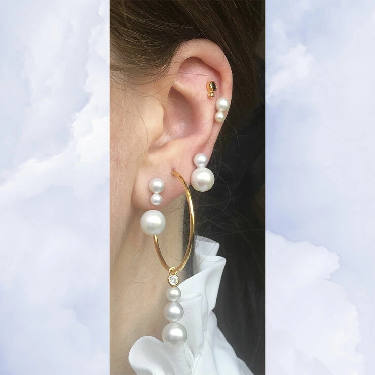 35mm hoop ørering med hvide ferskvandsperler og en klar sten. Sælges enkeltvis.