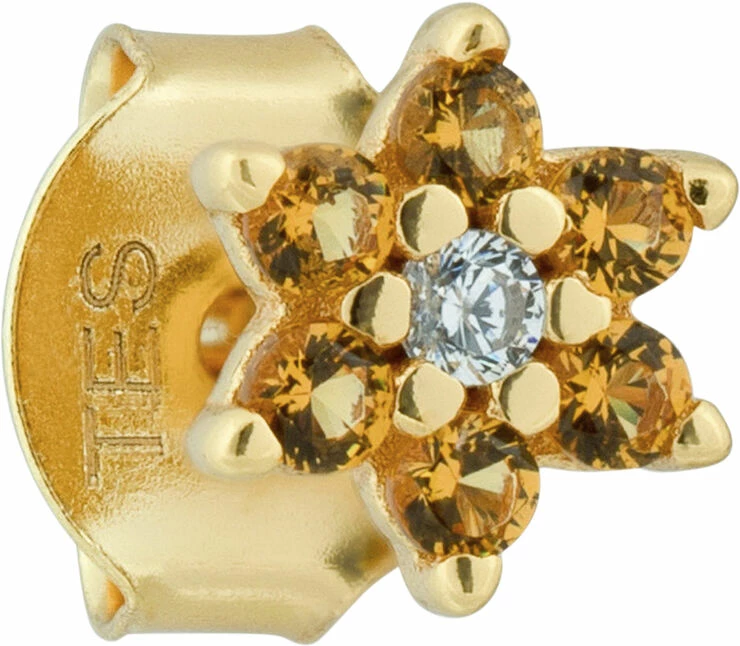 Lille ørestik med blomst med orangefarvede og en klar sten. Sælges enkeltvis.