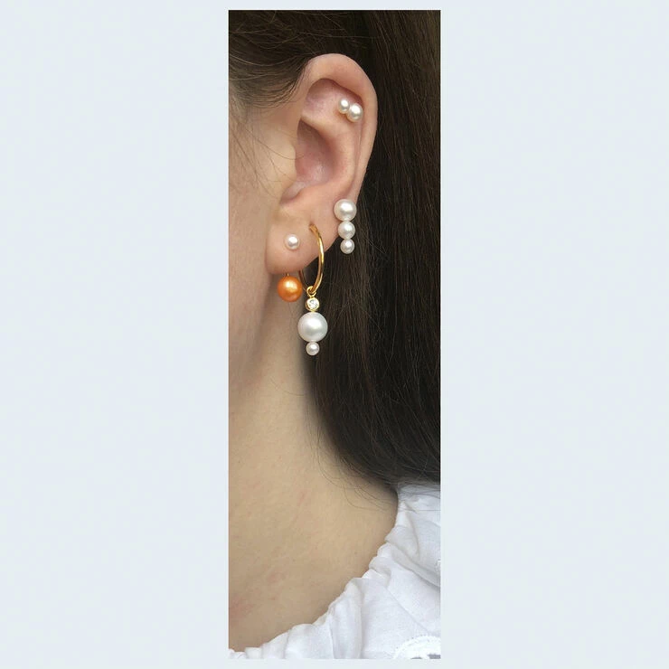 20mm hoop ørering med hvide ferskvandsperler og en klar sten. Sælges enkeltvis.