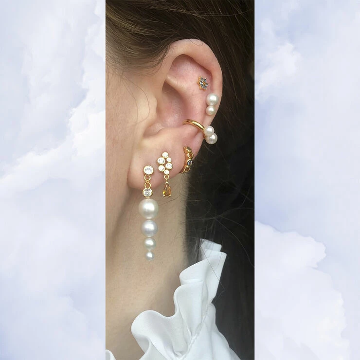 Fin ørering med klare sten og hvide ferskvandsperler. Sælges enkeltvis.