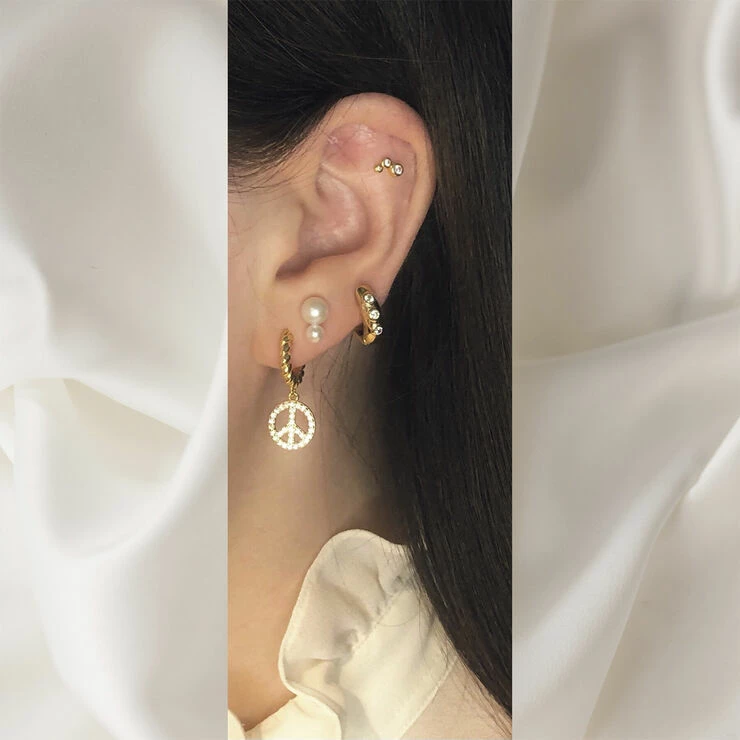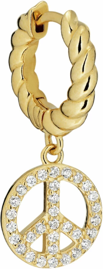 Chunky snoet huggie ørering med peace tegn med klare sten på. Sælges enkeltvis.