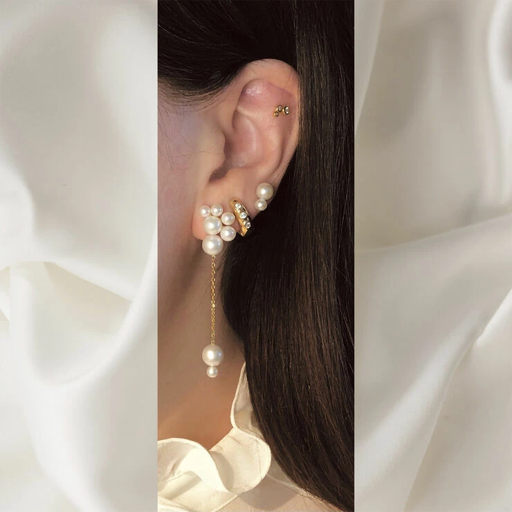 Smuk ørering med samlinger af fine hvide ferskvandsperler. Sælges enkeltvis.