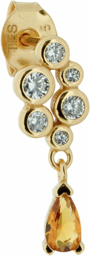 Ørestik med klare sten i smuk formation med orange dråbeformet sten for enden. Sælges enkeltvis.